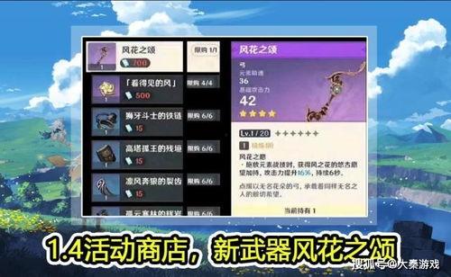 为了庆祝1.4版本的到来,原神将推出一系列新活动。其中,最引人注目的是“风神之眼”活动。在这个活动中,玩家们需要收集风神之眼碎片,解锁各种奖励。此外,还有“莫娜庆典”活动,玩家们可以通过完成任务获得莫娜专属的皮肤和武器。